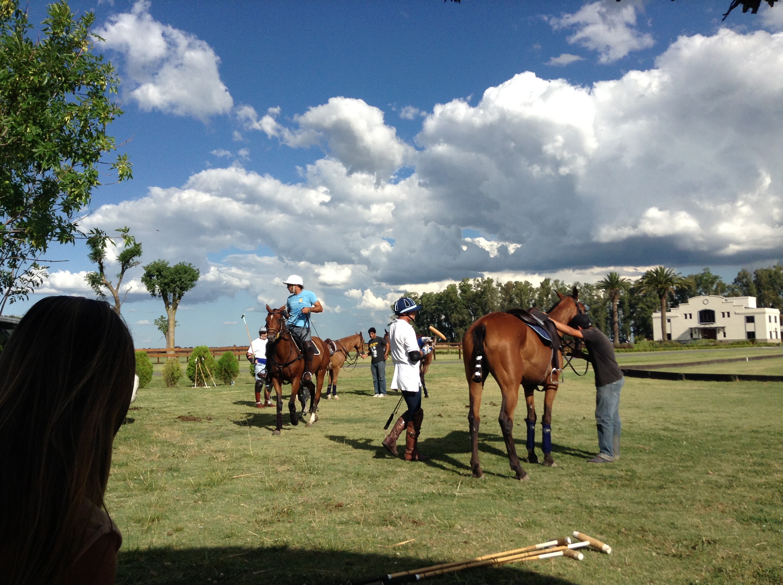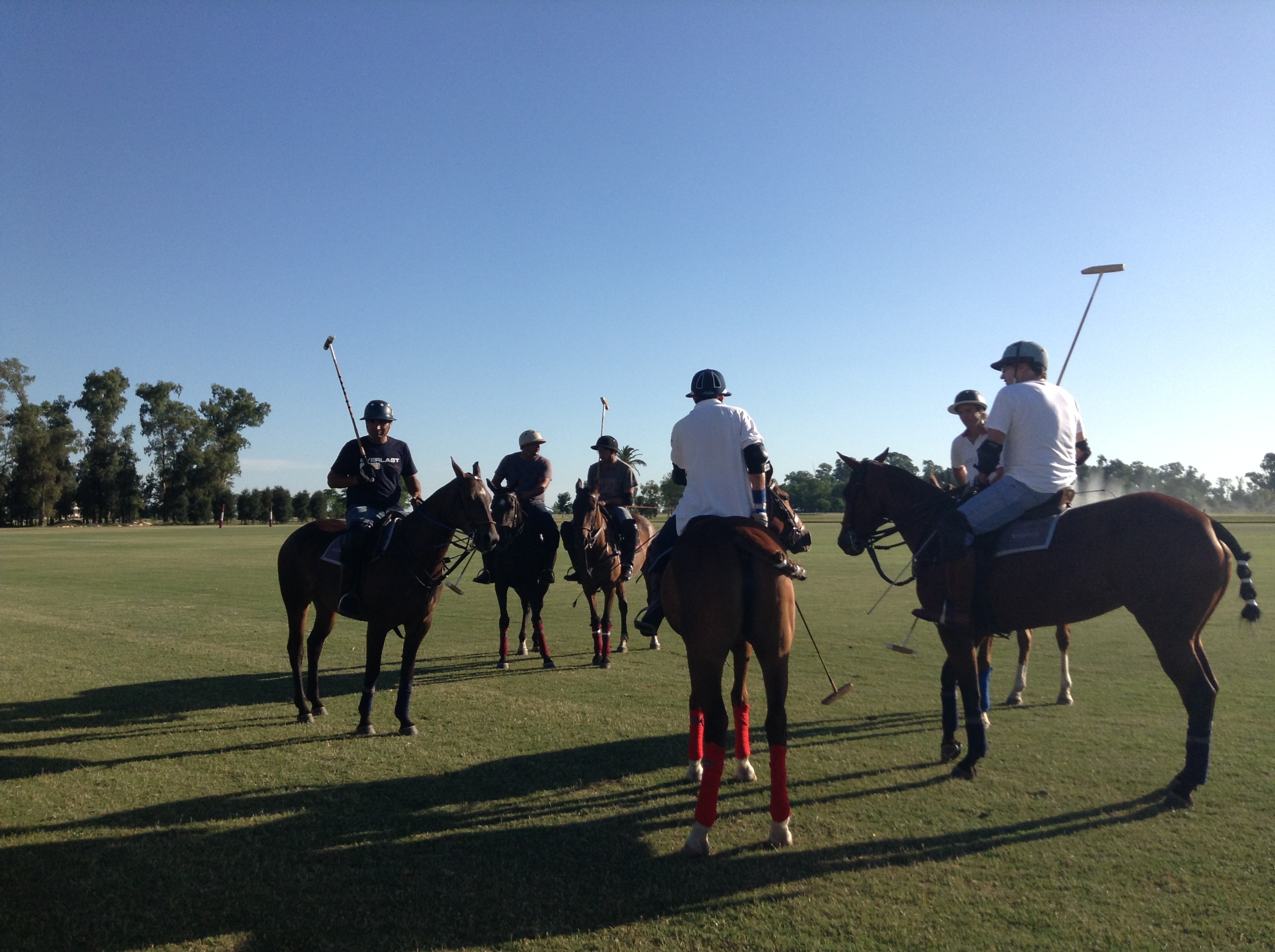 We have practice games on Tuesdays, Thursdays, Saturdays and Sundays, and other days as well if we have a lot of guests who play polo. Practices can be slow or fast depending on who is playing. Sometimes we have more than one; one for club members, pros and experienced players, and one for more beginners. Practices are always fun! Here are a few shots to give you an idea of a relaxed summer practice.