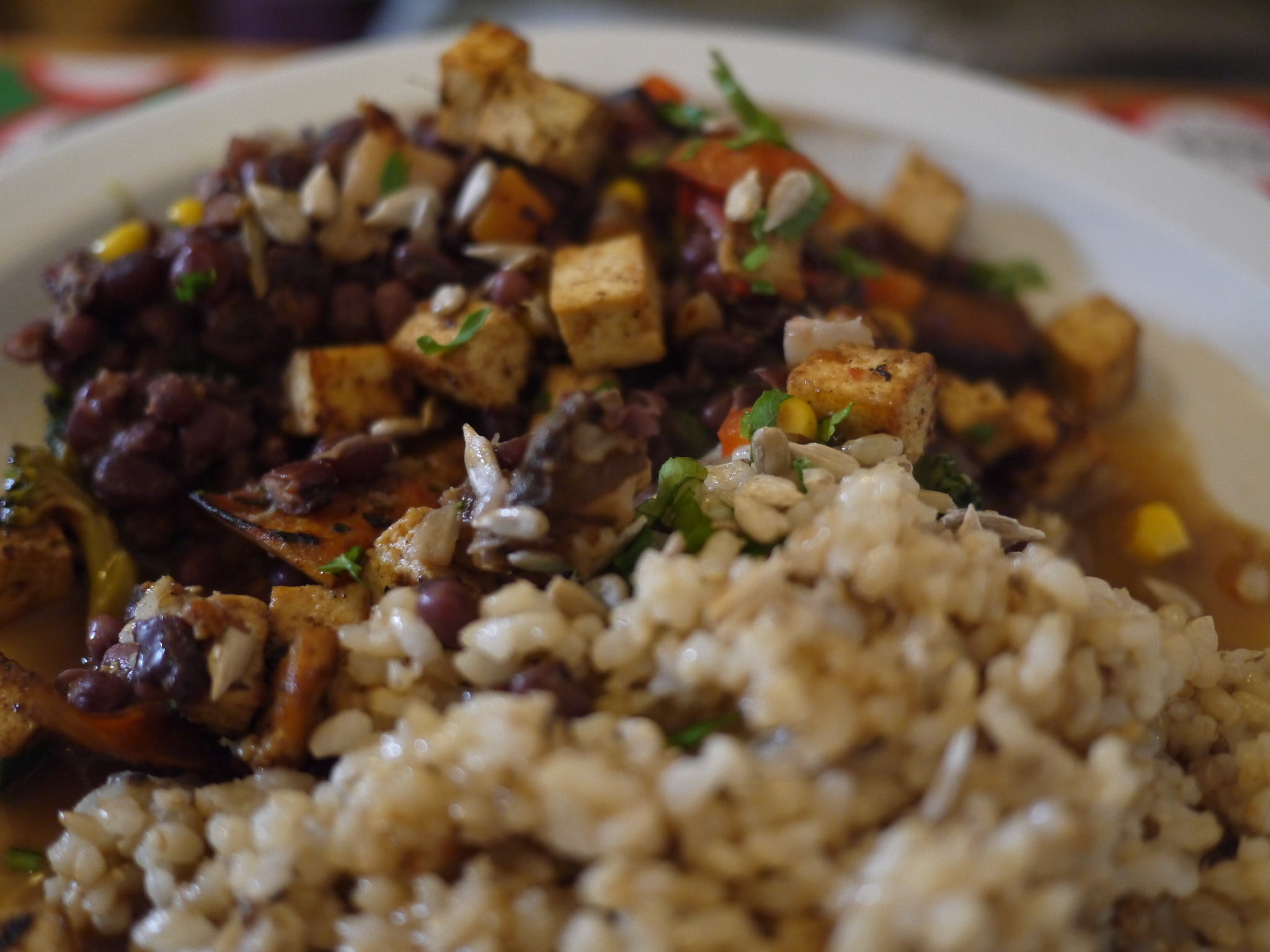 P1150952I am slowly trying more and more vegetarian places here in Buenos Aires, and one I will definitely be going back to is Algaia in Colegiales. Algaia is a restaurant, a place for cooking classes, and a provider of ready made meals (viandas in Spanish) that you can put in the freezer and pull out for a quick yet health and nutritious dinner. The owner, Nicolás, is a chef from France, trained in the French classic culinary tradition, who ended up cutting out animal products and alcohol. Upon arrival in Buenos Aires he worked at famous San Juan Café, and then later started Algaia.