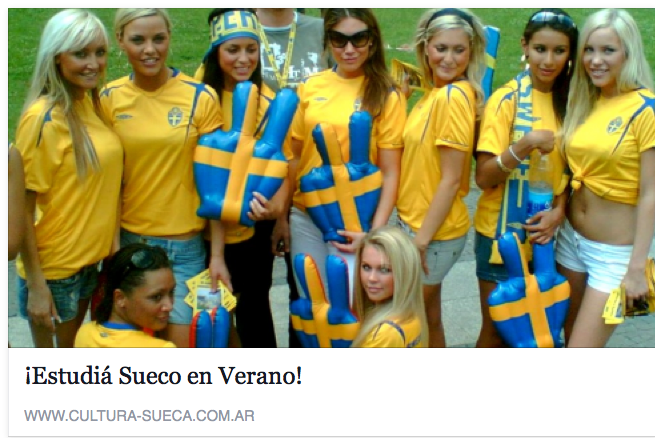 I just had to share a couple of photos from two different institutes that teach Swedish (and other languages) here in Buenos Aires. I think the first one is kind of annoying; does everything Swedish always have to be promoted by a photo of sexy girls?